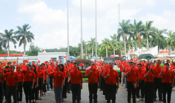盛夏七月,热情似火!尊龙·Z6公司已是党旗飘扬,处处洋溢着喜庆祥和的气氛。当日上午,身穿“中国红”T恤的党员等参会人员有序入场,列队数字“100”庆祝图案,表达对中国共产党的无限热爱。随着主持人一声令下,伴随着激昂雄壮的国歌声,护旗手奋力将鲜艳的五星红旗抛向天空,国旗迎着清晨第一缕阳光冉冉升起,全体人员庄重注视国旗,高唱国歌,脸上写满了骄傲与自豪。